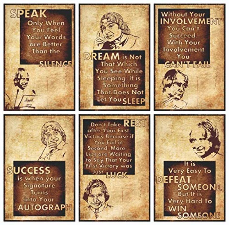 Vantagekart Dr. Abdul Kalam Inspirational Motivational Self Adhesive Wall Posters For Home & Office Decor (Paper, 12X18-Inch, Brown) – Set Of 6 is available on Amazon at best discounted online price. MRP of this product is ₹ 999.0. You can buy this product at discounted rate ₹ 104.0.
