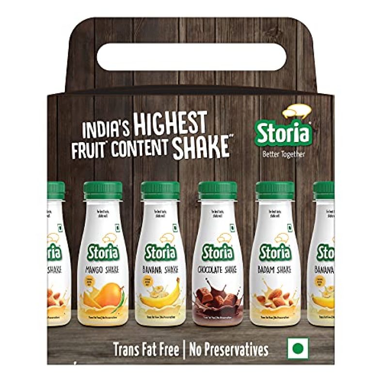 Storia Assorted Pack Of Milkshakes- India’S Highest Fruit Content Shake-Transfat Free & No Preservatives- Pack Of (6 X 200Ml) Pet Bottle is available on Amazon at best discounted online price. MRP of this product is ₹ 210.0. You can buy this product at discounted rate ₹ 140.0.