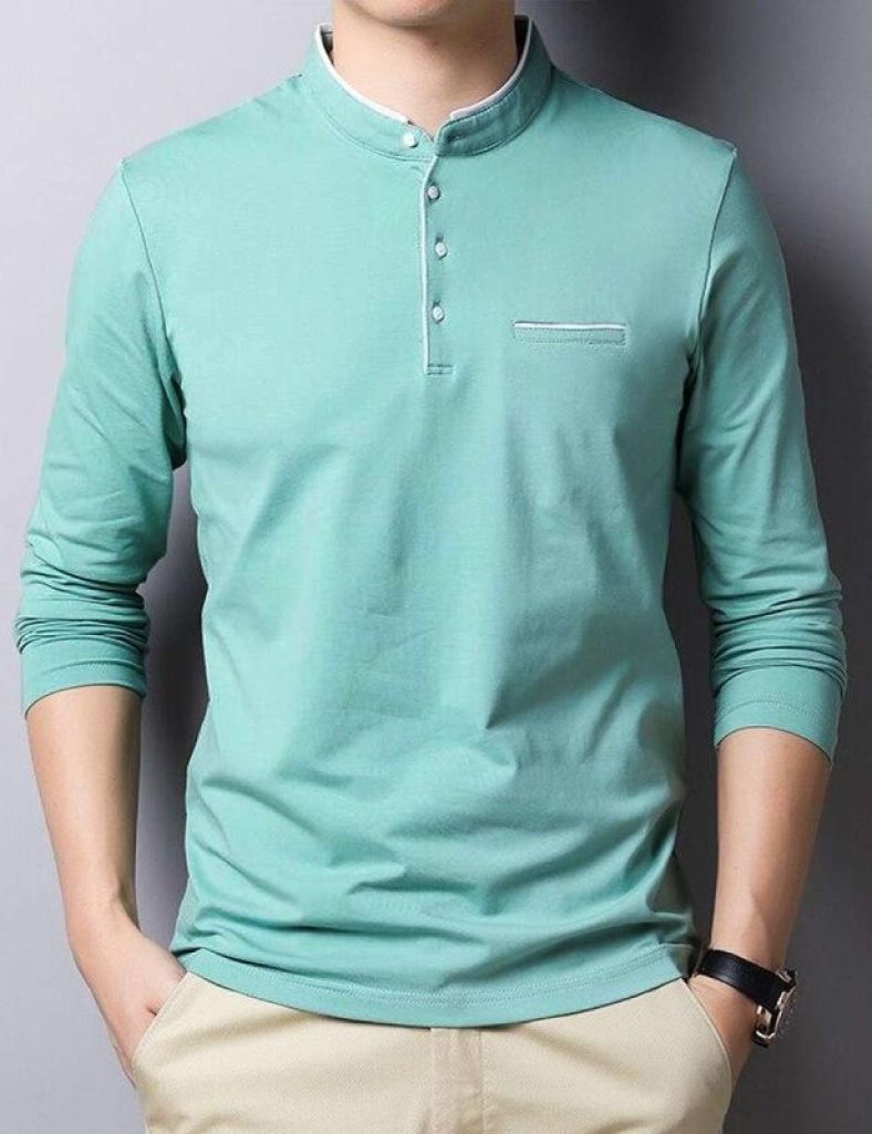 • Regular Fit Mandarin Collar T-shirt