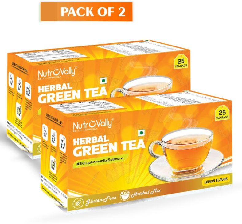 Nutrovally Herbal Green Tea For Weight Loss & Build Immunity | Premium Tea Leaves With 18 Active Ingredients (Herbal Tea Bag) Lemon Herbal Tea Bags Box(2 X 25 Bags) is available on Flipkart at best discounted online price. MRP of this product is ₹ 450.0. You can buy this product at discounted rate ₹ 223.0.