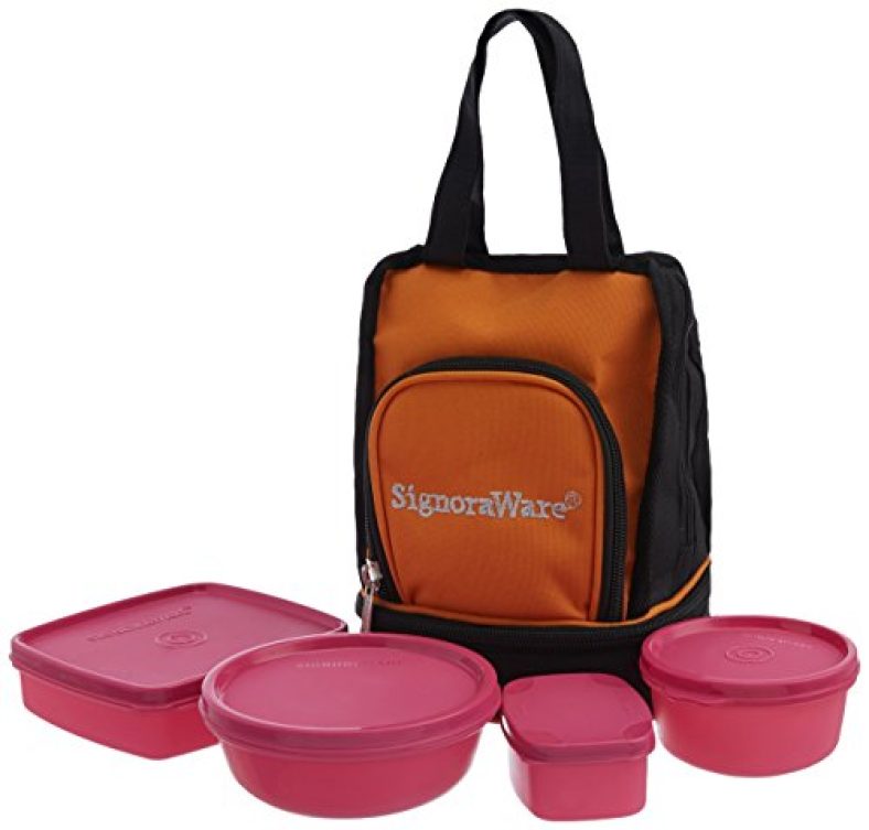 Signoraware Carry Lunch Box With Bag 4 Containers Lunch Box (950 Ml) is available on Amazon at best discounted online price. MRP of this product is ₹ 590.0. You can buy this product at discounted rate ₹ 319.0.