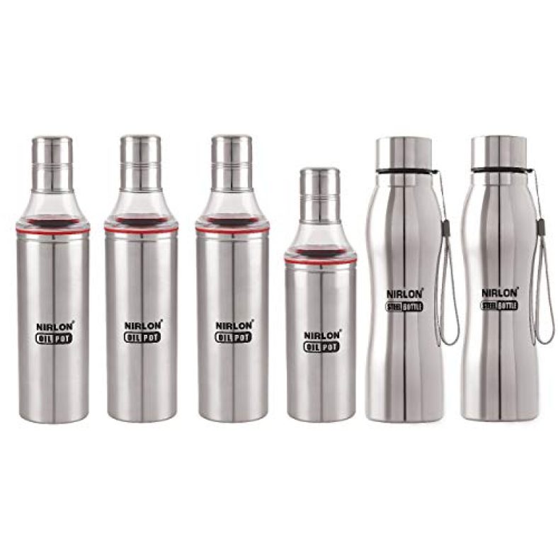 Nirlon High Durable Steel Oil Pot And Water Bottle Set Pack Of 06