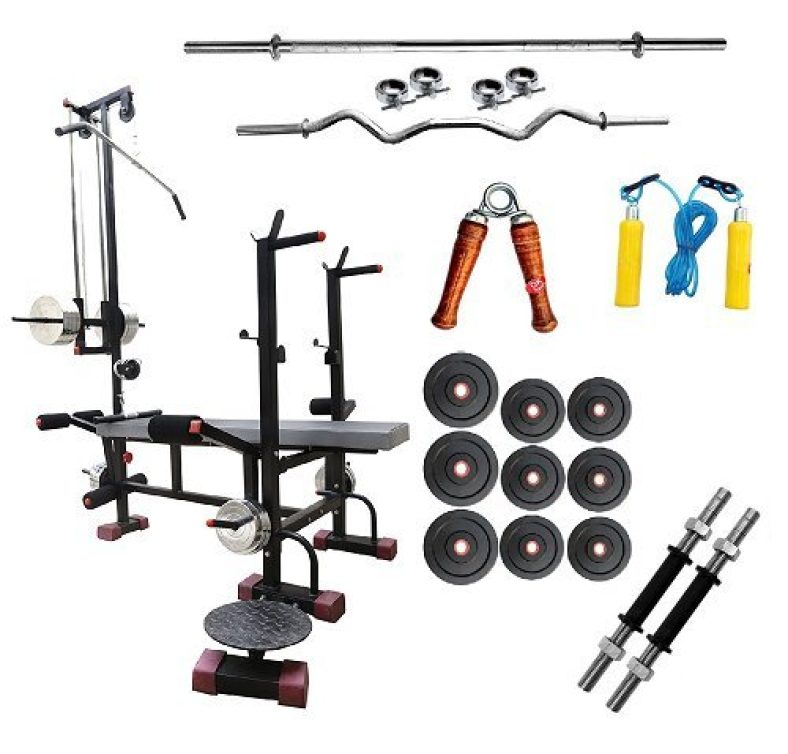 Bodykare 20-In-1 Multi-Functional Fitness Bench + 185 Kg Weight + Rubber Weight Plates +3 Ft Curl Rod +5 Ft Plain Rod + Dumbbells Rod With Skipping Rope, Hand Grip & Wrist Band (Multicolour) is available on Amazon at best discounted online price. MRP of this product is ₹ 33387.12. You can buy this product at discounted rate ₹ 3203.0.