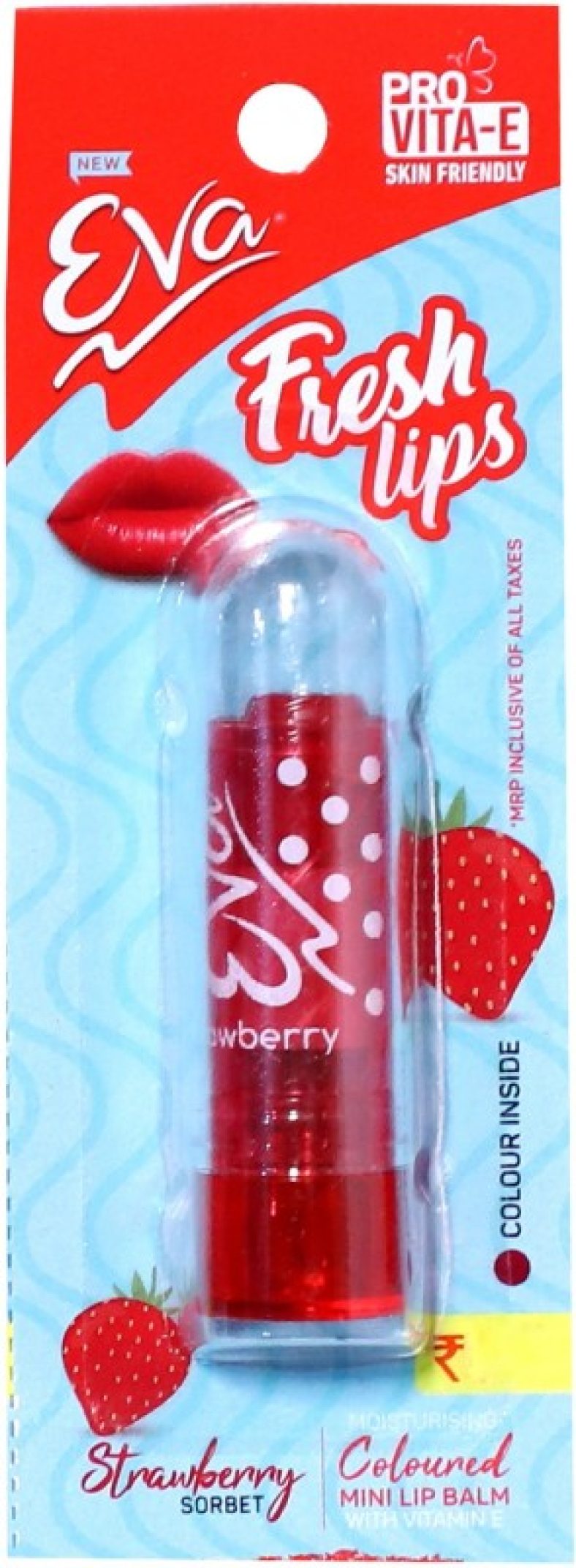 Eva Mositurising Coloured Mini Lip Balm Strawberry(Pack Of: 1, 1.2 G) is available on Flipkart at best discounted online price. MRP of this product is ₹ 149.0. You can buy this product at discounted rate ₹ 12.0.