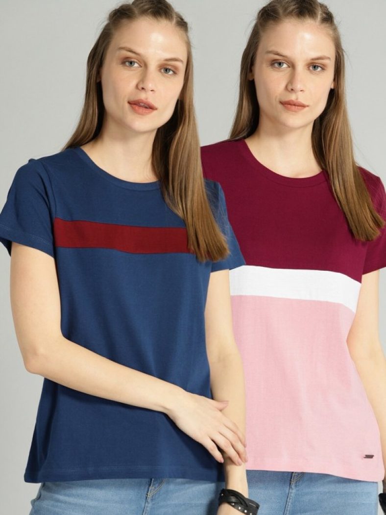 Roadster Color Block Women Round Neck Multicolor T-Shirt(Pack Of 2) is available on Flipkart at best discounted online price. MRP of this product is ₹ 1199.0. You can buy this product at discounted rate ₹ 99.0.
