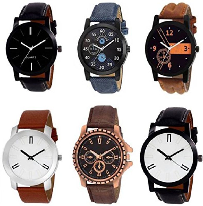 Nubela Analogue Multicolour Dial Leather Strap Men’S Watches Combo Of 6
