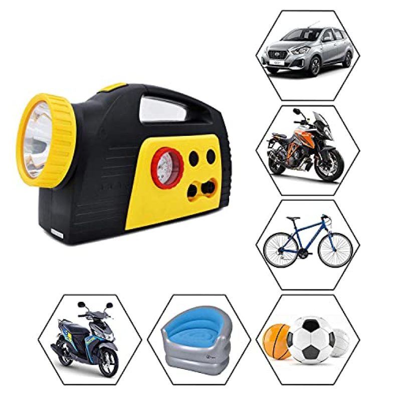 - With 3 different high air flow adaptors, suitable for automobile, motorcycle, locomotive, SUV, ATV, trucks, bicycle tyres, air bed, rubber boats, sport balls and inflatable toys