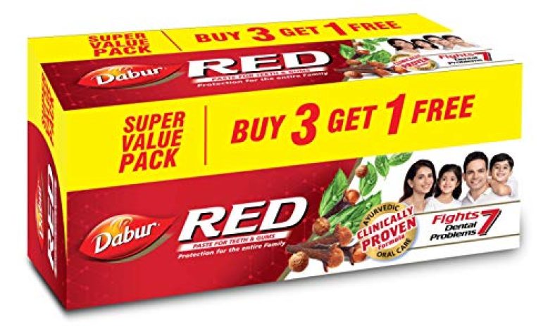 Dabur Red Paste – India’S No.1 Ayurvedic Paste, Provides Protection Plaque Removal, Toothache, Yellow Teeth, Bad Breath- 800G (200Gm*4) is available on Amazon at best discounted online price. MRP of this product is ₹ 315.0. You can buy this product at discounted rate ₹ 204.0.