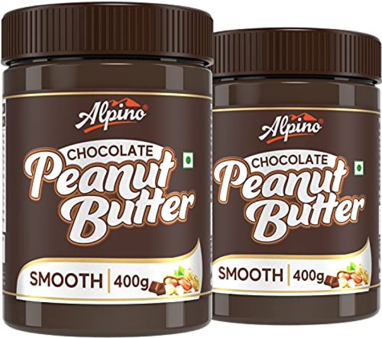 Alpino Chocolate Peanut Butter Smooth 800 G | Roasted Peanuts, Cocoa Powder & Choco Chips | High Protein Peanut Butter Creamy | Gluten-Free | Vegan | 400 G, Pack Of 2 is available on Amazon at best discounted online price. MRP of this product is ₹ 438.0. You can buy this product at discounted rate ₹ 379.0.