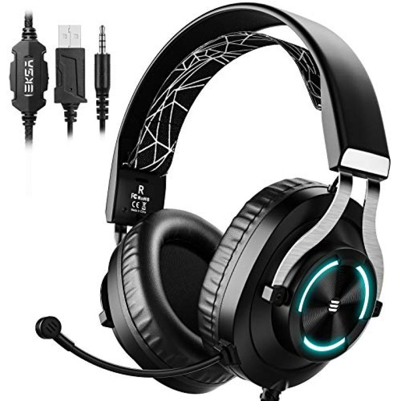 - Beautiful marquee design: EKSA gaming headset has a cool appearance design, beautiful metallic luster. With the new RGB light design, 6 colors are alternately displayed on the earmuffs, bringing you cool lights when plugged into the computer. Colorful RGB LED effect and game design add fun to the game With 3.5mm audio cable jack (USB jack just work for LED light), wired stereo sound over ear gaming headset supports PC,Xbox One Controller,Ps4, PSP, laptop, computer, iPad, Mac, tablet, cellphones.
