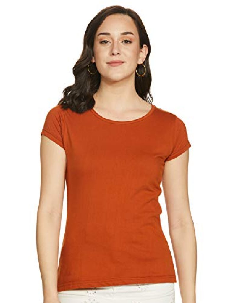 Styleville.In Women’S Plain Regular Fit T-Shirt (Stsf402480_Rust Medium) is available on Amazon at best discounted online price. MRP of this product is ₹ 999.0. You can buy this product at discounted rate ₹ 133.0.