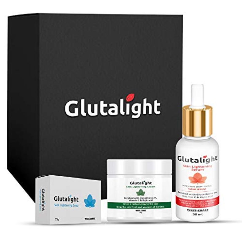 - Glutalight Skin Lightening/Brightening Combo kit will help in reducing hyper pigmentation and reduce spots from occurring in future. It also provides you a fairer, glowing, healthy and younger skin.