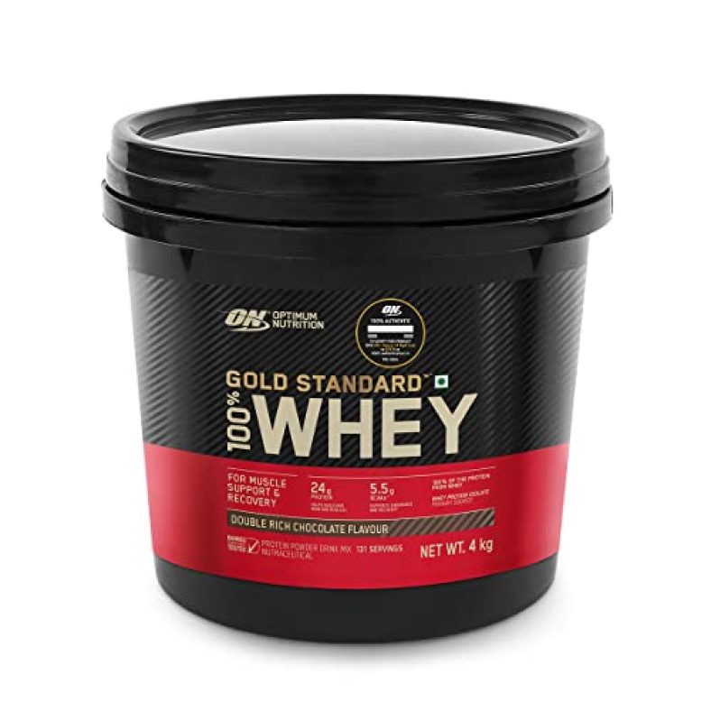 Optimum Nutrition (On) Gold Standard 100% Whey Protein Powder- 4 Kg, 131 Servings (Double Rich Chocolate), For Muscle Support & Recovery, Vegetarian – Primary Source Whey Isolate is available on Amazon at best discounted online price. MRP of this product is ₹ 13299.0. You can buy this product at discounted rate ₹ 3654.0.