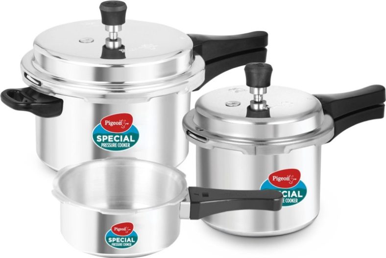 Pigeon Special Combo Pack 2 L, 3 L, 5 L Pressure Cooker(Aluminium) is available on Flipkart at best discounted online price. MRP of this product is ₹ 2395.0. You can buy this product at discounted rate ₹ 999.0.