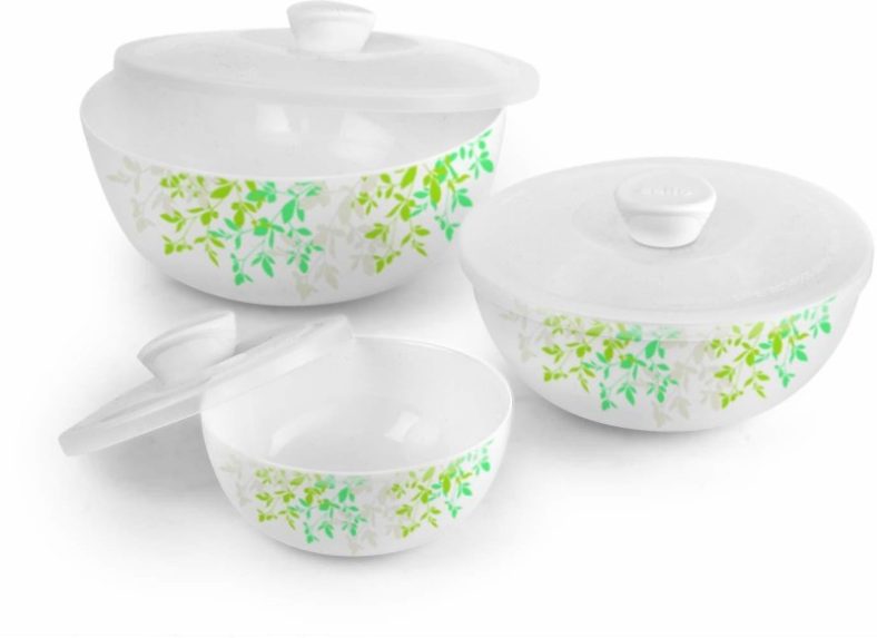 Cello Green Orchard Mixing Bowls With Lid(500Ml, 1000Ml,1500Ml), 3 Pc, White Opalware Serving Bowl(White, Pack Of 3) is available on Flipkart at best discounted online price. MRP of this product is ₹ 1999.0. You can buy this product at discounted rate ₹ 589.0.
