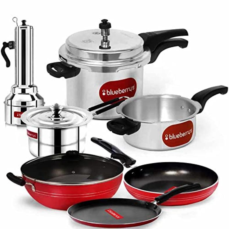Blueberry’S Combo 7 Set Kadhai/Fry Pan/Tawa Pan/5L Cooker/3L Cooker/Saucepan/Puttu Maker (7 Set) is available on Amazon at best discounted online price. MRP of this product is ₹ 7379.0. You can buy this product at discounted rate ₹ 2990.0.