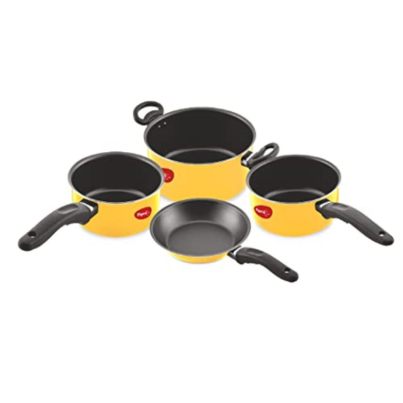 Pigeon Master Chef Non-Stick Aluminium Cookware Set Non-Induction Base Includes (3 Sauce Pan – 1 L, 1.5 L & 3 L, Fry Pan) – 4 Piece (Yellow) is available on Amazon at best discounted online price. MRP of this product is ₹ 2495.0. You can buy this product at discounted rate ₹ 998.0.