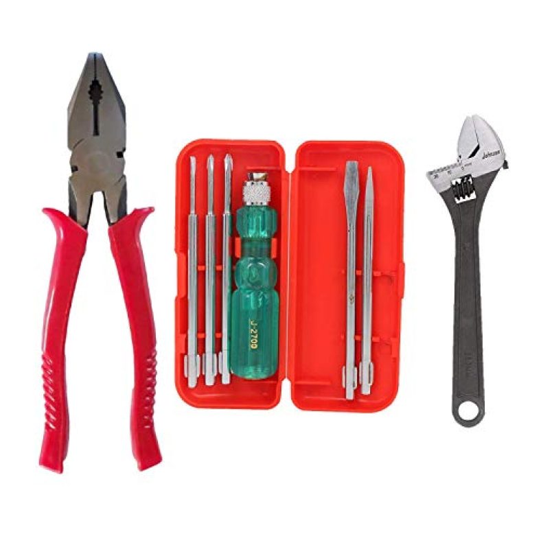 - Combination Plier & 5-Pieces Screwdriver Kit (Multicolour) & Drop Forged Vanadium Steel Adjustable Wrench (Silver, 200 mm)