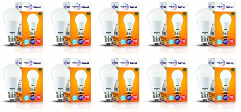 Wipro Polycarbonate Garnet Base E27 7-Watt Led Bulb (Pack Of 10, Cool Day Light) is available on Amazon at best discounted online price. MRP of this product is ₹ 2250.0. You can buy this product at discounted rate ₹ 572.13.