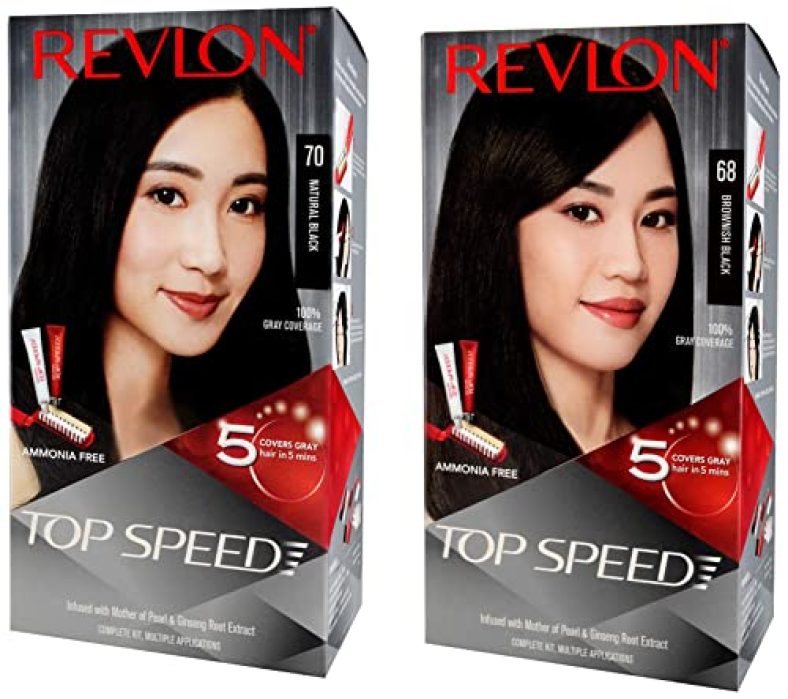 Revlon Top Speed Hair Color Women, Brownish Black 68 |No Ammonia | With Ginseng Root Extract And Mother Of Pearl & Revlon Top Speed Hair Color For Women, 180G – Natural Black 70 (Pack Of 1)