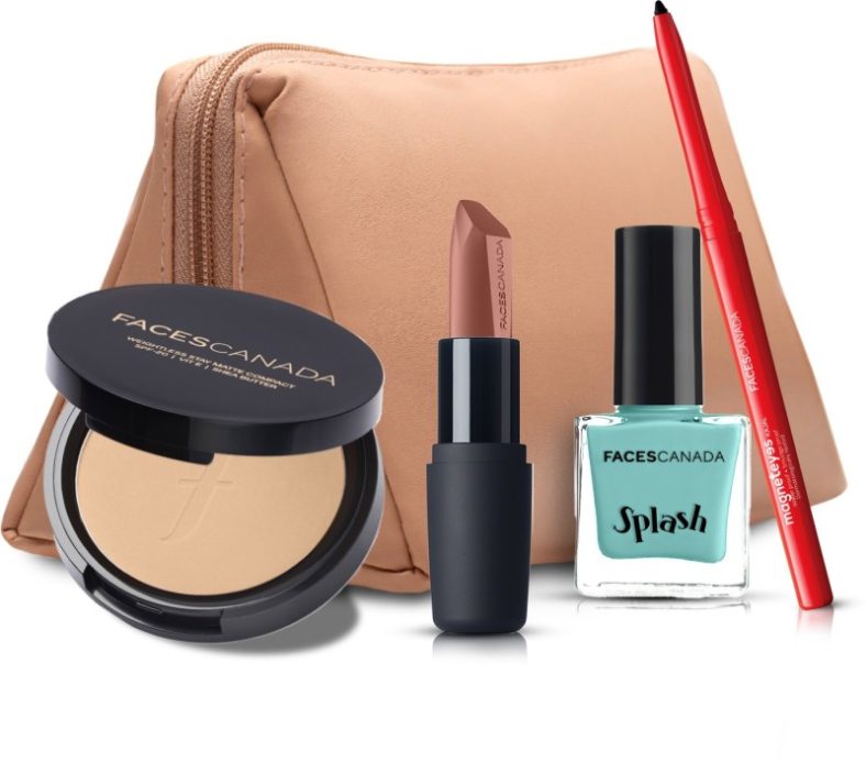Faces Canada Must Have Kit (Combo Of Kajal,Lipstick,Compact,Nail Enamel,Pouch)(5 Items In The Set)