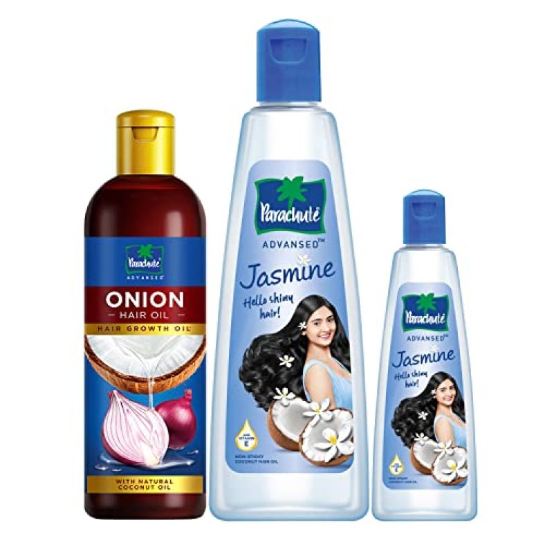 Parachute Advansed Onion Hair Oil, Hair Growth Oil & Reduces Hairfall , 200Ml & Jasmine, Non Sticky Coconut Hair Oil, For Shiny & Strong Hair, 400 Ml + 90 Ml is available on Amazon at best discounted online price. MRP of this product is ₹ 634.0. You can buy this product at discounted rate ₹ 192.3.