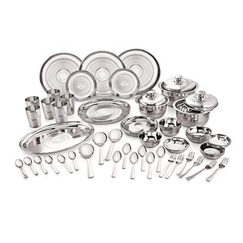 Neelam Stainless Steel 24 Gauge Diamond Touch Dinner Set, 61 Pcs, Silver is available on Amazon at best discounted online price. MRP of this product is ₹ 5939.0. You can buy this product at discounted rate ₹ 2243.19.