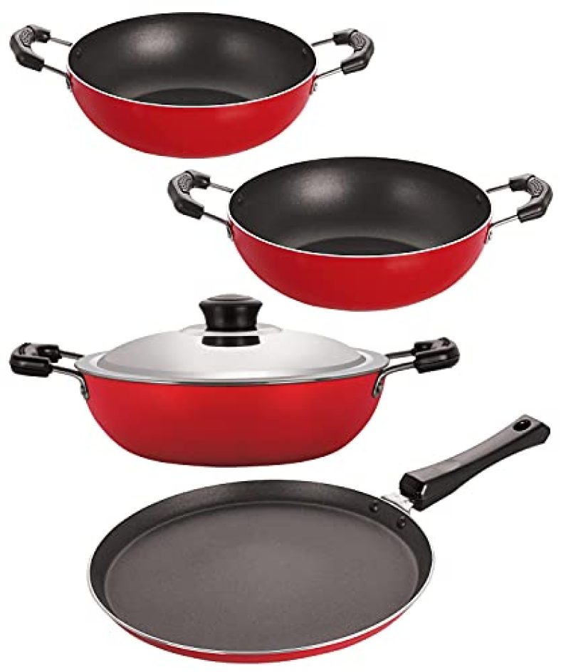 - Package Content:Flat Tawa – 29.5cm_Kadhai – 1.5Ltr_Kadhai – 2Ltr_Deep Kadhai – 2.6Ltr
