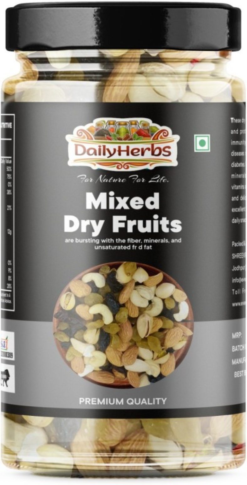 Dailyherbs Mix Dry Fruits [Almonds, Cashews, Raisins, Pistachios,Apricot,Black Raisins](500 G) is available on Flipkart at best discounted online price. MRP of this product is ₹ 999.0. You can buy this product at discounted rate ₹ 399.0.