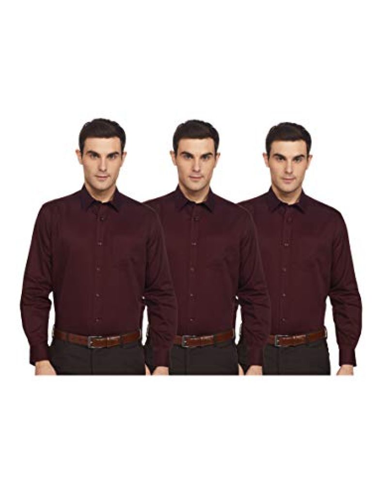 Amazon Brand – Symbol Men’S Solid Regular Formal Shirt (Pack Of 3) (Ss20-Sym-Fs-01_Epp-1C_Wine 42)
