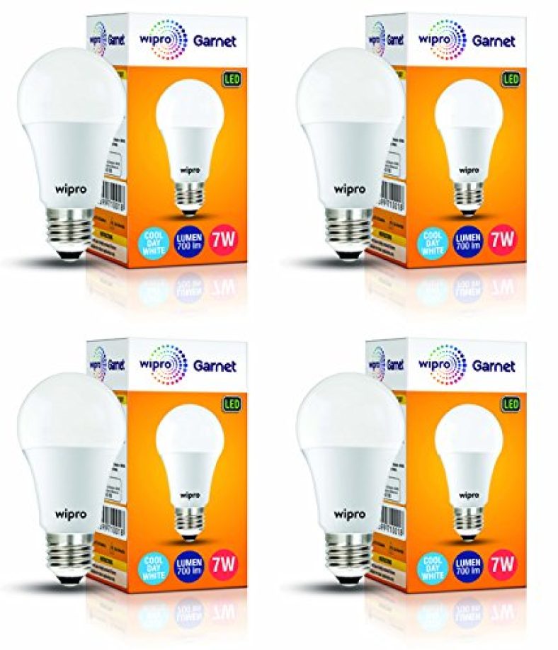 Wipro Garnet Base E27 7-Watt Led Bulb (Pack Of 4, Cool Day Light)