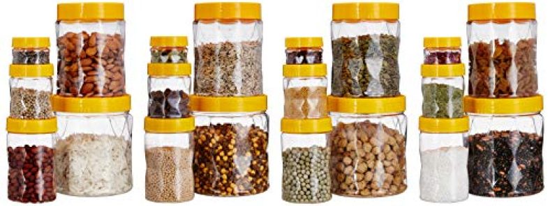 - Get ample of storage capacity with a set of 20 jars – 4 each in the sizes of 1800ml, 1200ml, 450 ml, 200ml, 50ml