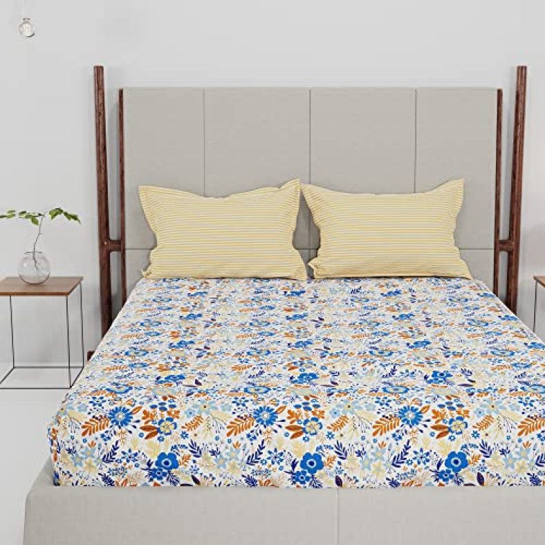 Trident Feather Tales Bed Sheet Set With 2 Pillow Covers, 144 Thread Count, Queen Size, 100% Cotton – Gardenia Blooms Blue is available on Amazon at best discounted online price. MRP of this product is ₹ 1999.0. You can buy this product at discounted rate ₹ 1199.0.
