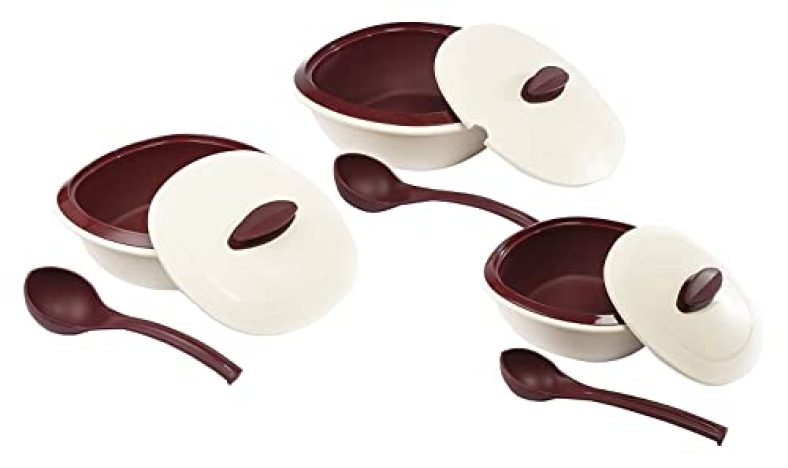Signoraware Plastic Casserole Set, 6-Pieces, Maroon is available on Amazon at best discounted online price. MRP of this product is ₹ 1550.0. You can buy this product at discounted rate ₹ 688.08.