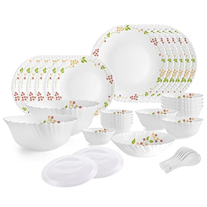 Cello Secret Garden Dazzle Series Opalware Dinner Set, 35 Pieces, Service For 6, White, Extra Large is available on Amazon at best discounted online price. MRP of this product is ₹ 3499.0. You can buy this product at discounted rate ₹ 2099.0.