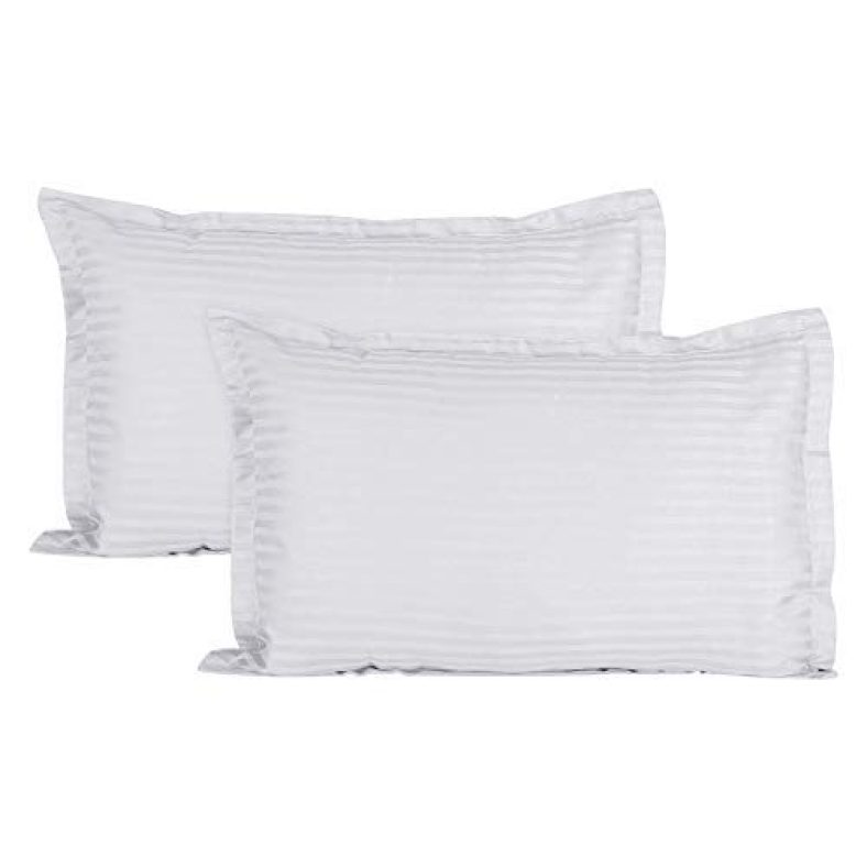 Huesland By Ahmedabad Cotton Sateen Striped 220Tc Cotton Standard 2 Pillow Covers – White