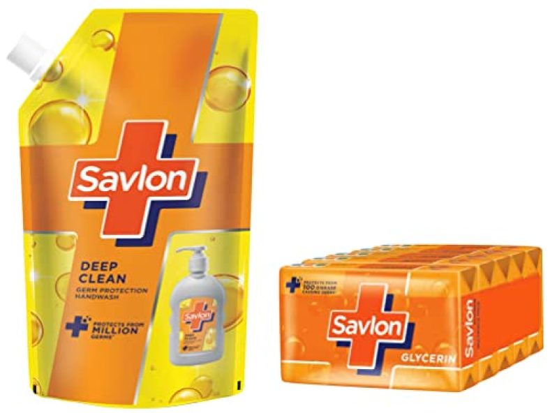 Savlon Deep Clean Germ Protection Liquid Handwash Refill Pouch, 725Ml & Savlon Moisturizing Glycerin Soap Bar With Germ Protection, Pack Of 5-125G Each is available on Amazon at best discounted online price. MRP of this product is ₹ 474.0. You can buy this product at discounted rate ₹ 147.0.