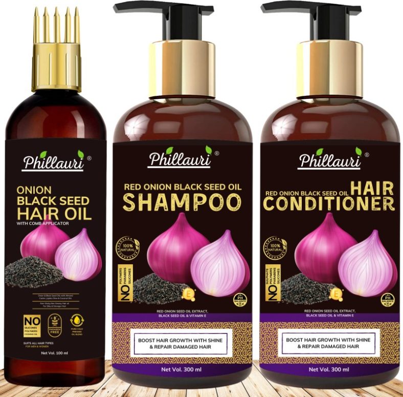 Phillauri Red Onion Black Seed Oil Ultimate Hair Care Kit (Shampoo + Hair Conditioner + Hair Oil)(3 Items In The Set)
