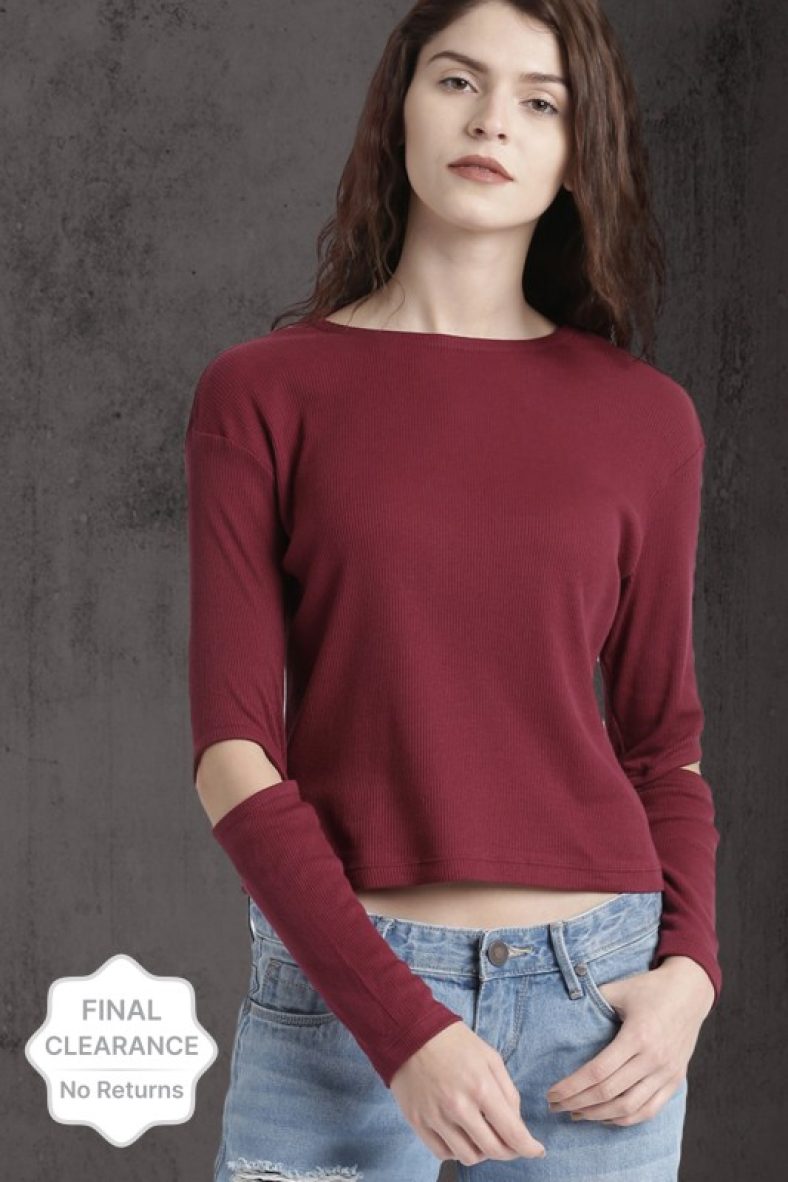 Roadster Casual Cutout Sleeve Solid Women Maroon Top is available on Flipkart at best discounted online price. MRP of this product is ₹ 699.0. You can buy this product at discounted rate ₹ 69.0.