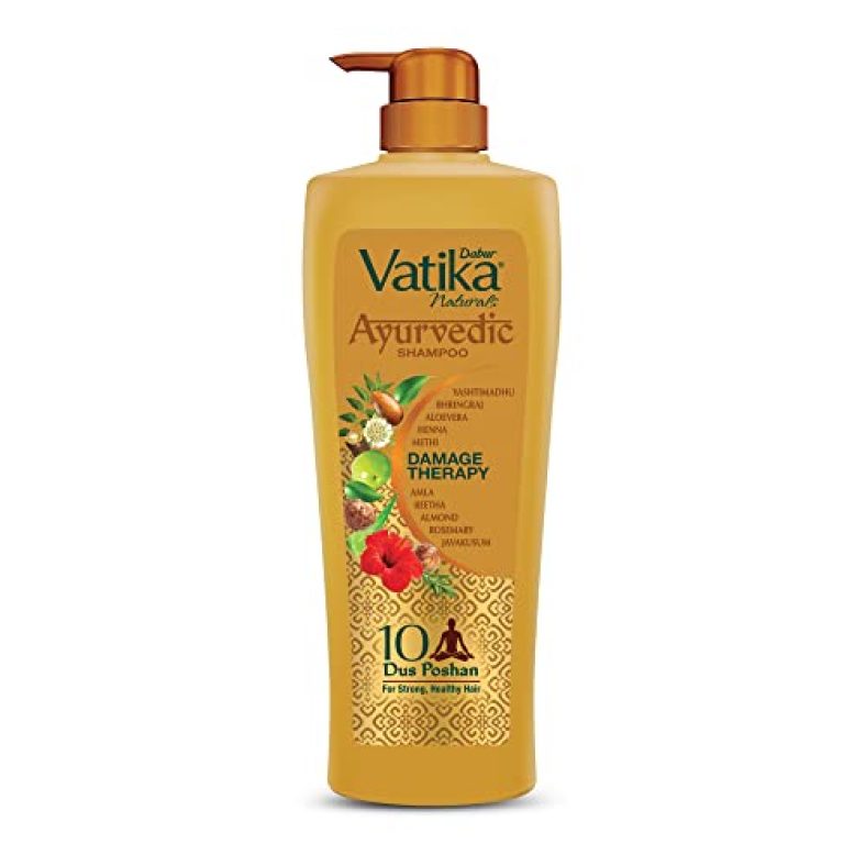 Dabur Vatika Ayurvedic Shampoo – 340Ml | Damage Therapy | With Power Of 10 Ingredients For Solving 10 Hair Problems| No Parabens | For All Hair Types