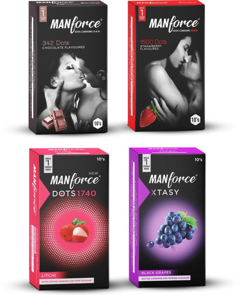 Manforce Condoms Chocalate, Strawberry, Litchi , Black Graps, Condom(Set Of 4, 40 Sheets)