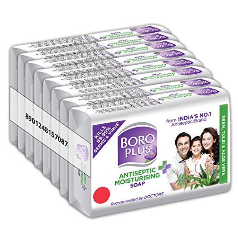 Boroplus Antiseptic And Moisturising Bathing Soap With Aloe Vera, Neem And Tulsi | 99.9% Germ And Virus Protection | For Smooth, Soft & Nourished Skin, 125G (Pack Of 8) is available on Amazon at best discounted online price. MRP of this product is ₹ 504.0. You can buy this product at discounted rate ₹ 327.0.