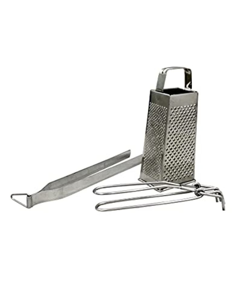 • Dimension-Chimta:- 29 cm long, Pakkad:- 20.5×4 cm, Grater:- 9×6.5×21 cm.