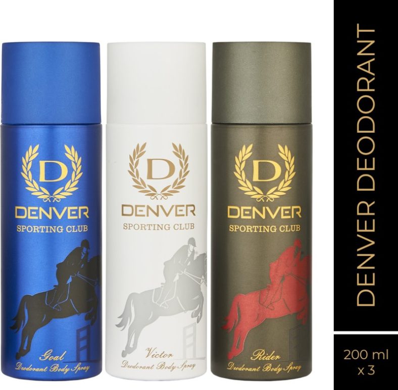 Denver Sporting Club Rider, Goal & Victor (Pack Of 3) Deodorant Spray – For Men(600 Ml, Pack Of 3) is available on Flipkart at best discounted online price. MRP of this product is ₹ 840.0. You can buy this product at discounted rate ₹ 319.