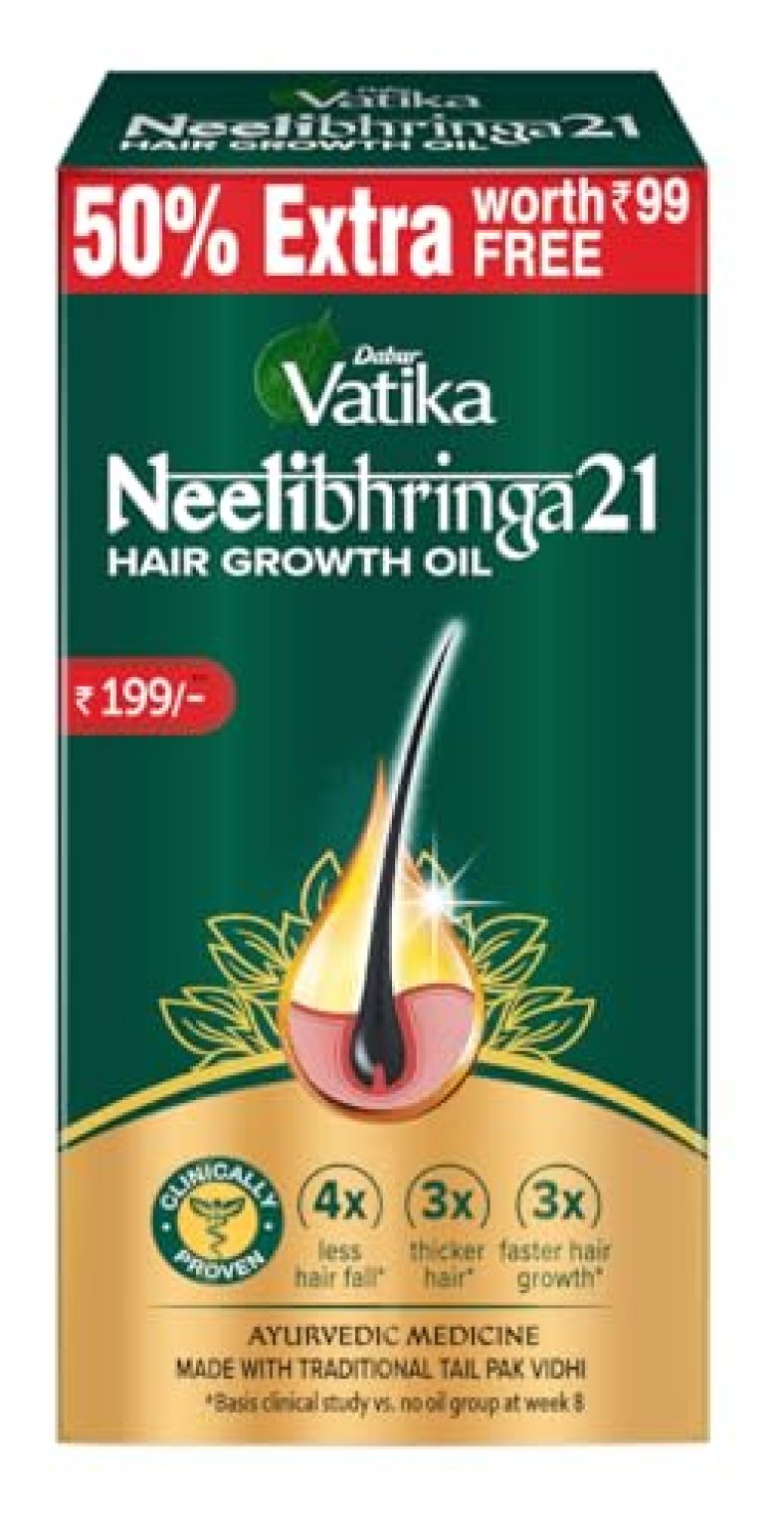 Dabur Vatika Neelibhringa 21 Hair Growth Oil – (50Ml+25Ml Extra Free) | New Hair Growth In 2 Months, Clinically Proven is available on Amazon at best discounted online price. MRP of this product is ₹ 199.0. You can buy this product at discounted rate ₹ 97.