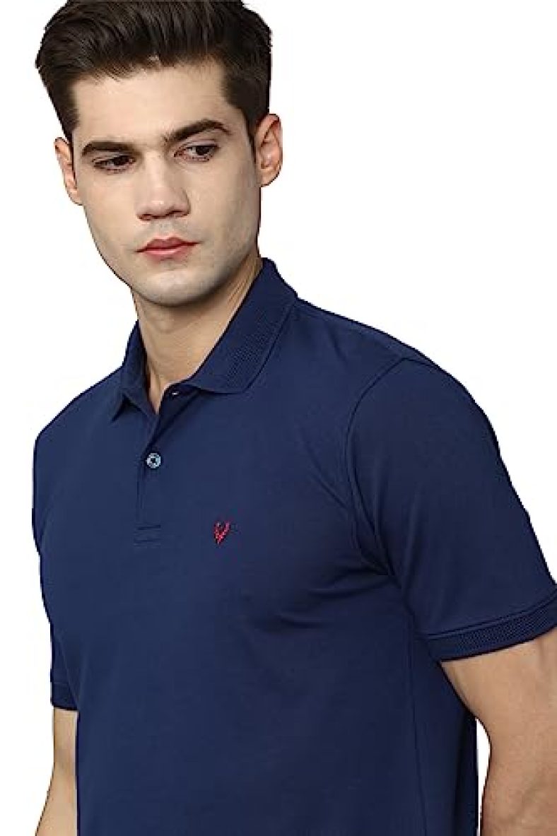Allen Solly Men’S Solid Regular Fit T-Shirt (Askpcurgpp29002_Navy L)
