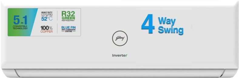 Godrej 5-In-1 Convertible Cooling 2023 Model 1.5 Ton 4 Star Split Inverter With 4 Way Swing And Tri Filtration System Ac – White(Ei 18Pinv4R32-Wwp, Copper Condenser) is available on Flipkart at best discounted online price. Original of this product is ₹ 49990.0. You can buy this product at discounted rate ₹ 32990.