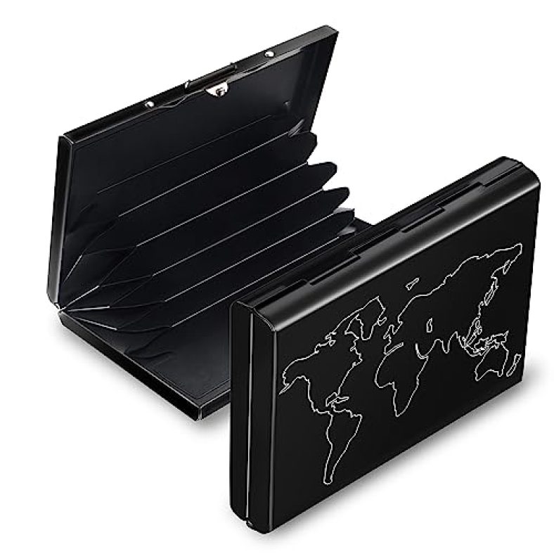 • Capacity : Stores 6 Debit/Credit Bank ATM cards. Easy click button for opening and closing, Latches safely and securely when not in use.