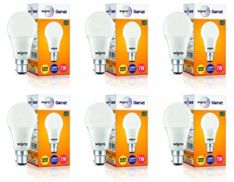 Wipro Garnet 7W Led Bulb For Home & Office |Warm White (2700K) | B22 Base|220 Degree Light Coverage |4Kv Surge Protection |400V High Voltage Protection |Energy Efficient | Pack Of 6 is available on Amazon at best discounted online price. Original of this product is ₹ 1350.0. You can buy this product at discounted rate ₹ 276.