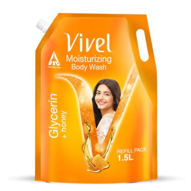 Vivel Exfoliating Body Wash, Glycerin & Honey, Moisturising Shower Gel, 1500Ml, For Glowing And Moisturised Skin Refill Pouch, All Skin Types is available on Amazon at best discounted online price. Original of this product is ₹ 600.0. You can buy this product at discounted rate ₹ 300.